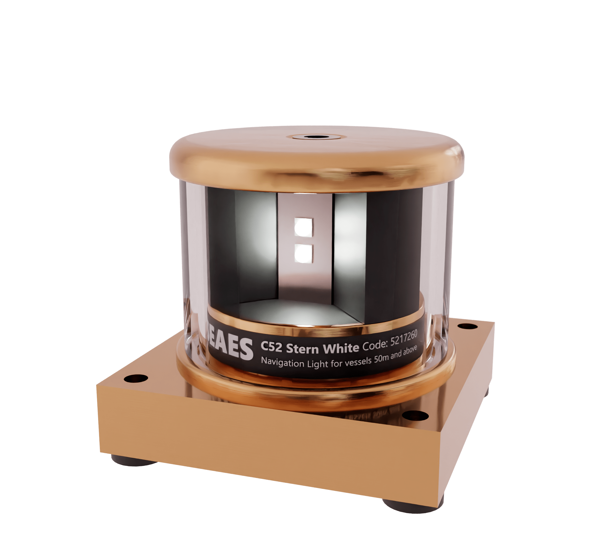 Seaes C52 Series Double LED Navigation Lanterns (NL) are intended for use on ships with length of 50 meters or more. Light visibility is: masthead white – 6 nautical miles, a maneuvering light – 5 nautical miles, all other lights – 3 nautical miles. Double LED modules are used as a light source with an operating voltage of 2 × 24 V and low power consumption about 3.5 W.